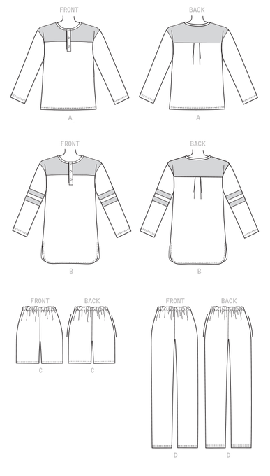 Pdb6531 Misses Men S Childrens Boys Girls Top Tunic Shorts And Pants Butterick Patterns