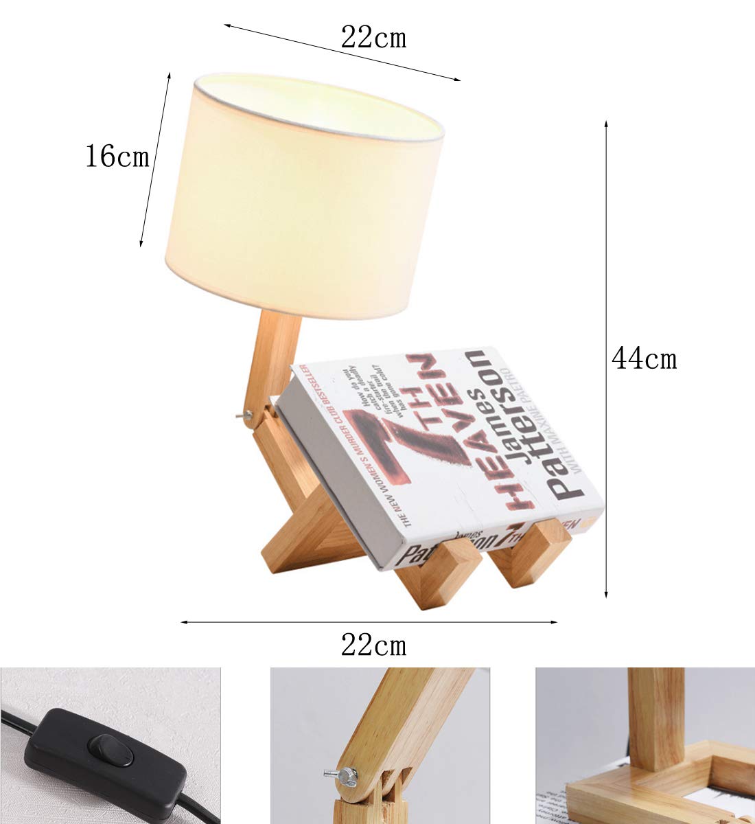 E27 Led Reading Light Table Lamp Wood Creative Desk Lamp Modern Wooden Doll Design Bedside Lamp Adjustable White Table Lamp Round Fabric Cloth Textile Shade Reading Light With Switch Height 44 Cm